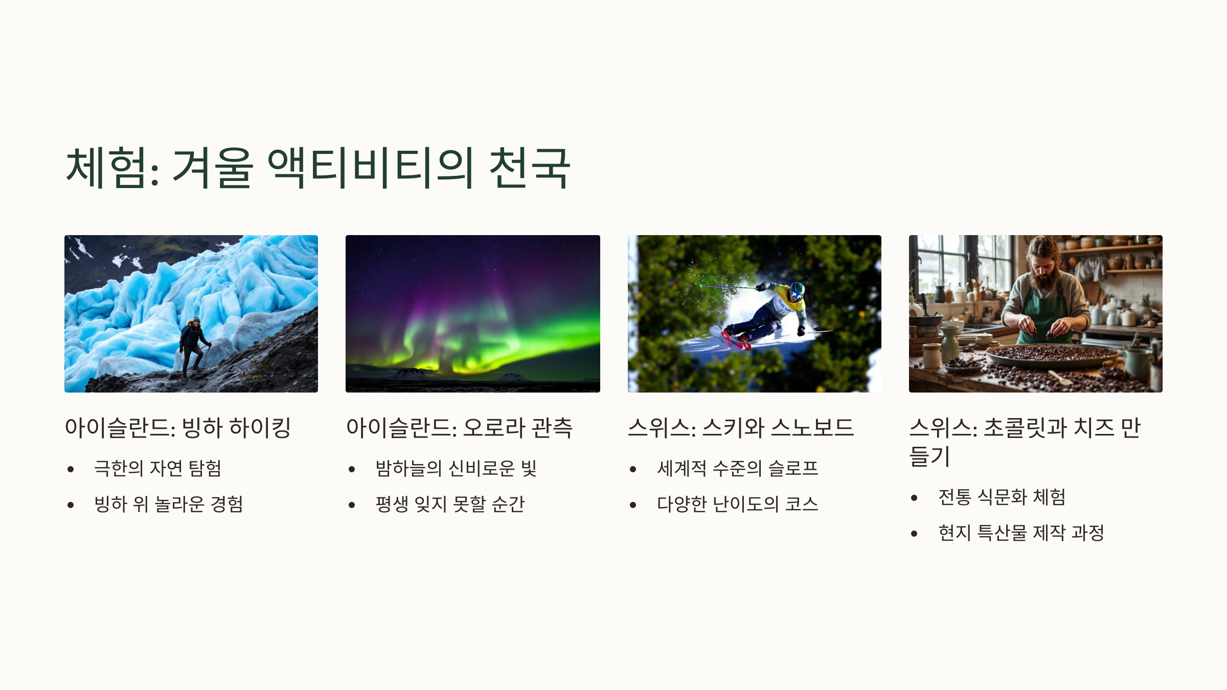 체험: 극한의 자연 vs 겨울 스포츠의 천국