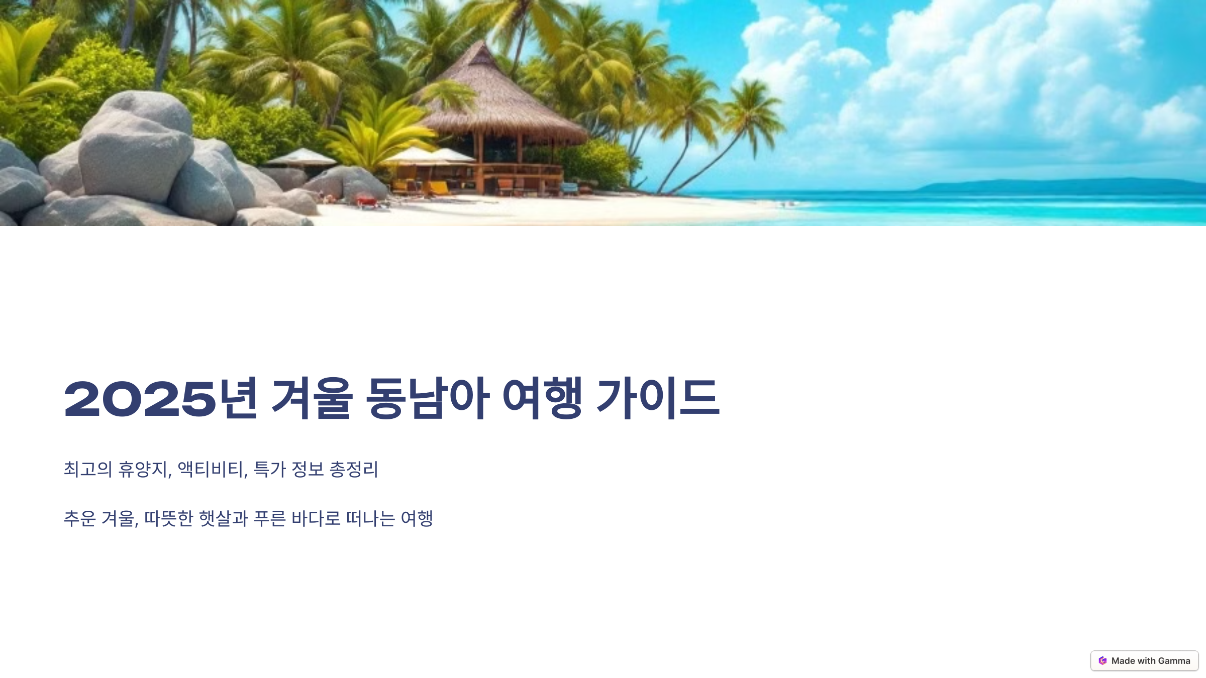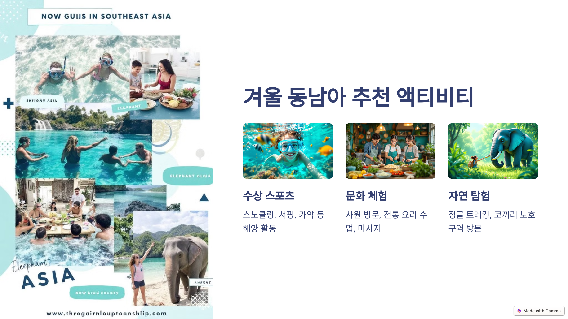 추운 겨울, 따뜻한 햇살과 푸른 바다가 그리워지는 계절이 돌아왔습니다. 2025년 겨울, 동남아로 떠나는 여행은 어떨까요? 이번 글에서는 2025년 겨울 동남아 여행을 계획하시는 분들을 위해 최고의 휴양지, 즐길 만한 액티비티, 그리고 놓치지 말아야 할 특가 정보까지 모두 담아보았습니다. 함께 떠나볼까요?